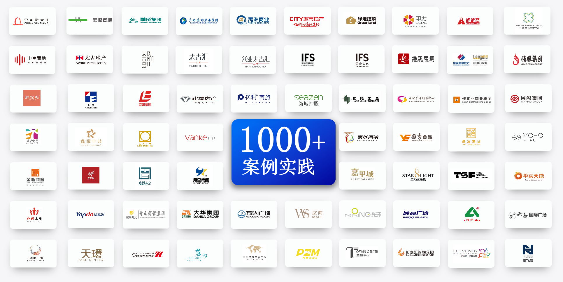 近30年來,團(tuán)隊(duì)服務(wù)行業(yè)客戶已突破1000家,在商業(yè)地產(chǎn)行業(yè)Top50企業(yè)中,海鼎科技客戶覆蓋率達(dá)60%,包括:恒隆地產(chǎn)、太古地產(chǎn)、九龍倉集團(tuán)、印力集團(tuán)等知名企業(yè),擁有前沿、可靠的商業(yè)地產(chǎn)數(shù)字化建設(shè)經(jīng)驗(yàn)。